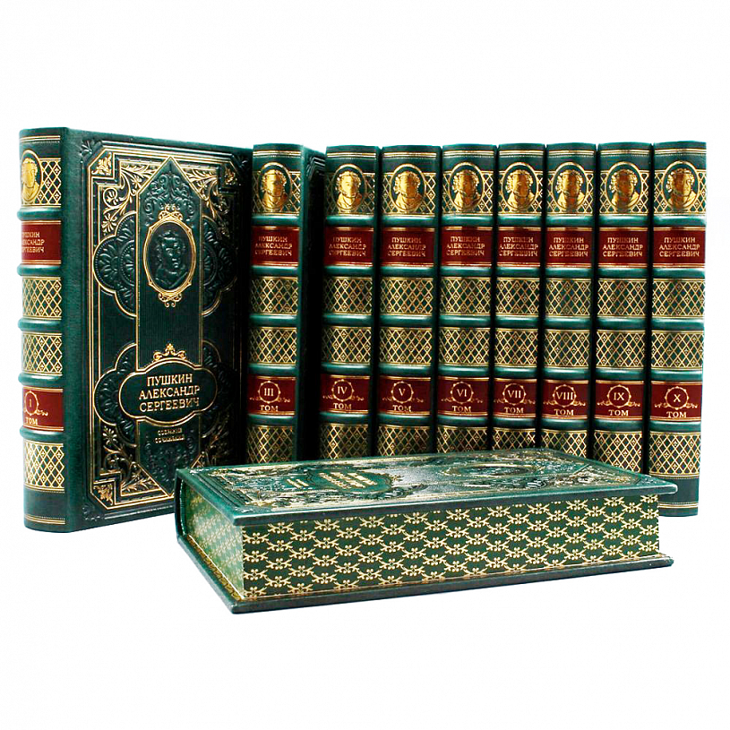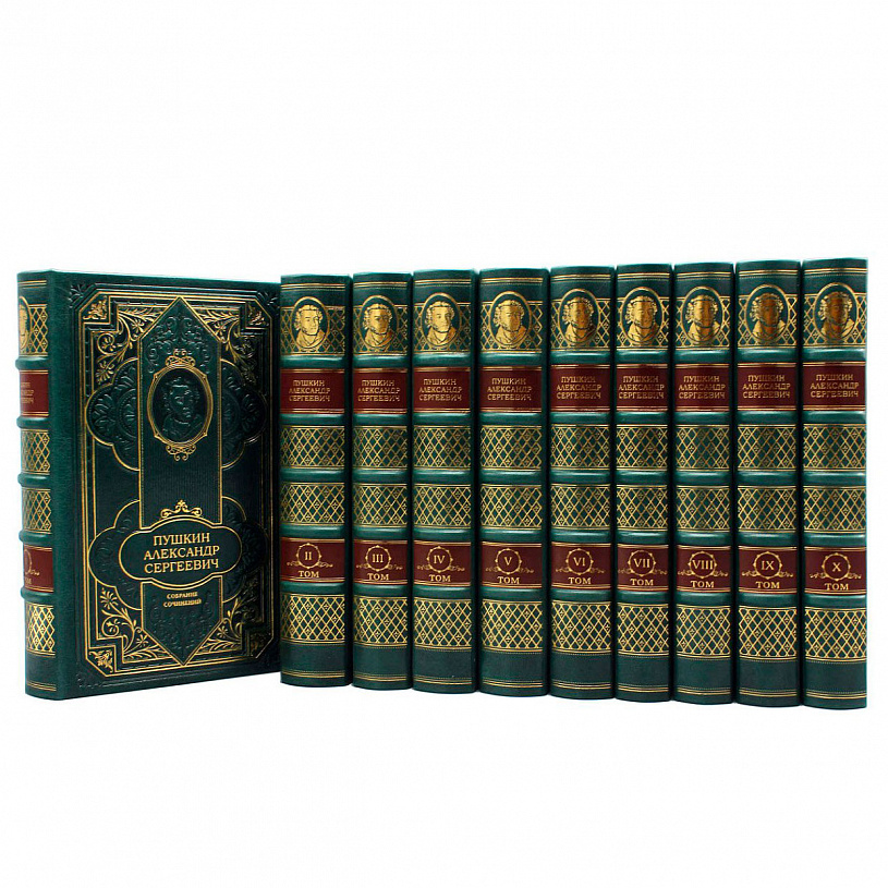 Десятитомное собрание сочинений А. С. Пушкина, подарочное издание является одним из наиболее полных и представительных среди не академических собраний сочинений. В него вошли, помимо самых популярных и любимых стихотворений, поэм, романов и повестей, ранние стихи поэта, его незавершенные произведения и отрывки ранних редакций всем знакомых шедевров, а также исторические статьи и большое эпистолярное наследие великого гения, в том числе его воспоминания о современниках и интереснейшие пометки, которые он оставлял при чтении книг.