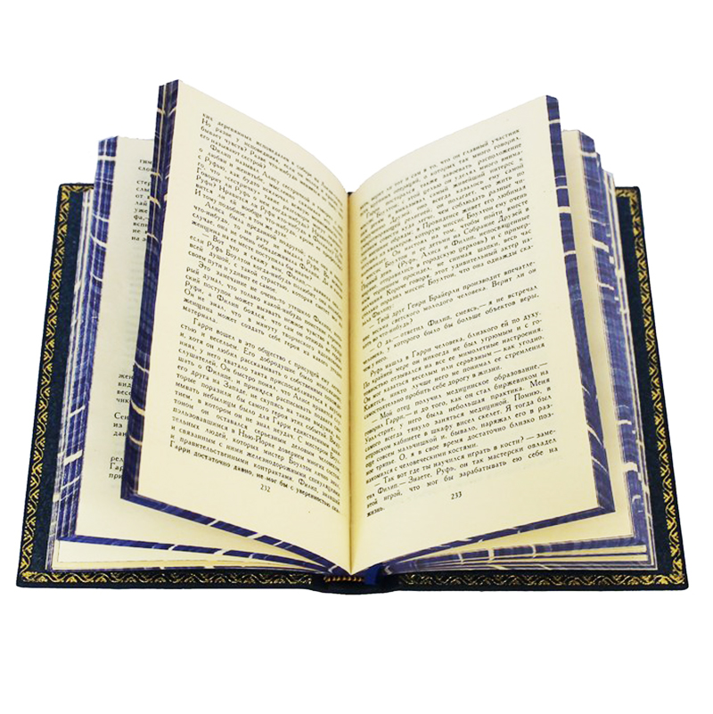 Богато оформленное собрание, представлено в подарочном издании. Цельнокожаный переплёт из натуральной шагрени, ручной работы, украшен цветной кожаной вставкой, а также серебряным и золотым тиснением. На обложке изображён портрет автора, а узнаваемые сюжеты и образы дополняют дизайн. Корешок декорирован бинтами. Текст книги напечатан на офсетной бумаге. Обрез оформлен в технике "Перо павлина". Ляссе из шёлковой ленты. Форзац цельный из дизайнерской бумаги. Дублюра окатана золотом.