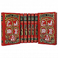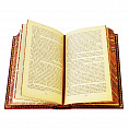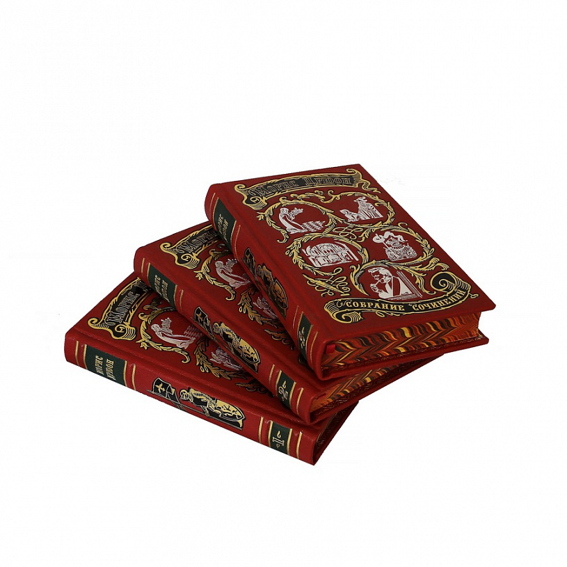Богато оформленное собрание, представлено в подарочном издании. Цельнокожаный переплёт из натуральной шагрени, ручной работы, украшен цветной кожаной вставкой, а также серебряным