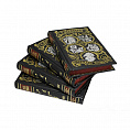 Богато оформленное собрание, представлено в подарочном издании. Цельнокожаный переплёт из натуральной шагрени, ручной работы, украшен цветной кожаной вставкой, а также серебряным