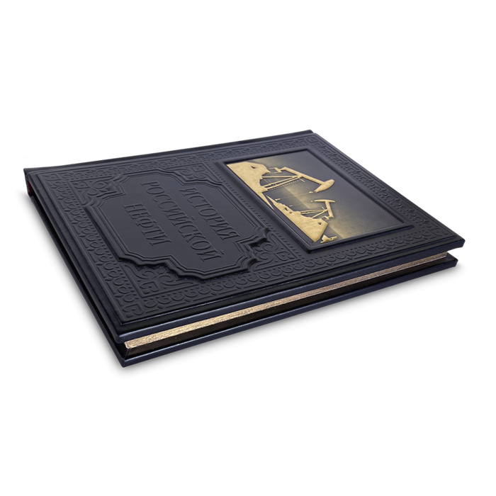 кожаный переплет, мелованная бумага, цветные иллюстрации,объемное 3D фольгированное тиснение, затертое золотой пастой
