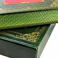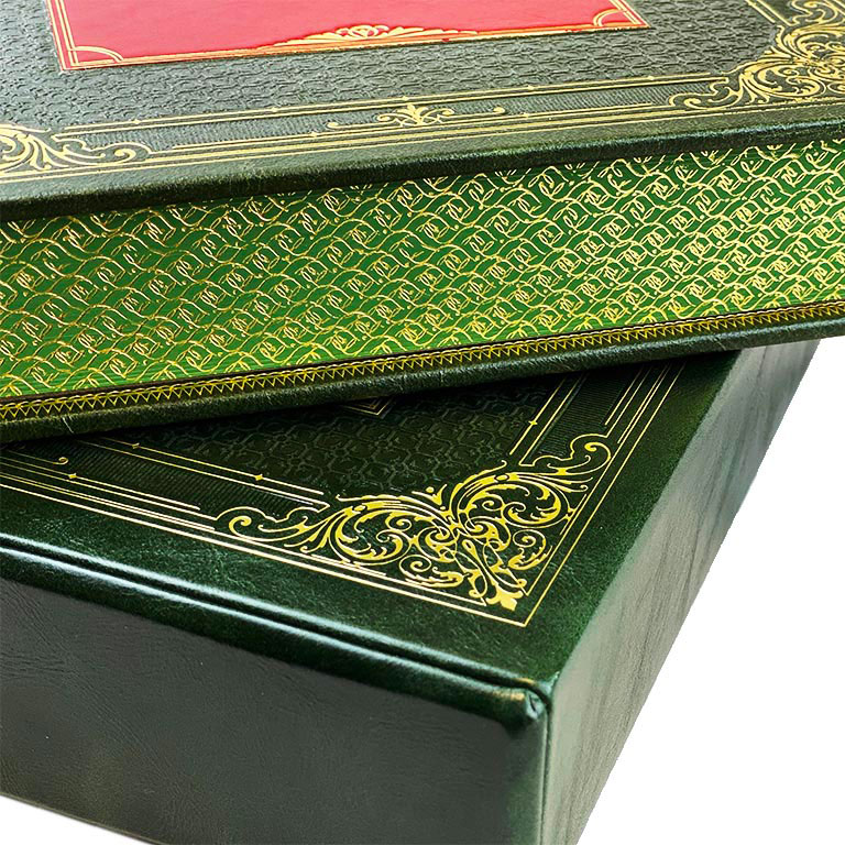 Издание представлено в подарочном футляре. Французский цельнокожаный переплёт ручной работы, украшен блинтовым и золотым тиснением. Дизайн дополнен богато оформленными дублюрами составными форзацам, а также крашенным в тон переплетного материала обрезом и шелковым ляссе. Отпечатано на дизайнерской бумаге "верже". Книга представлена в оригинальном подарочном коробе, перчатки в комплекте. Количество страниц : 609 стр.