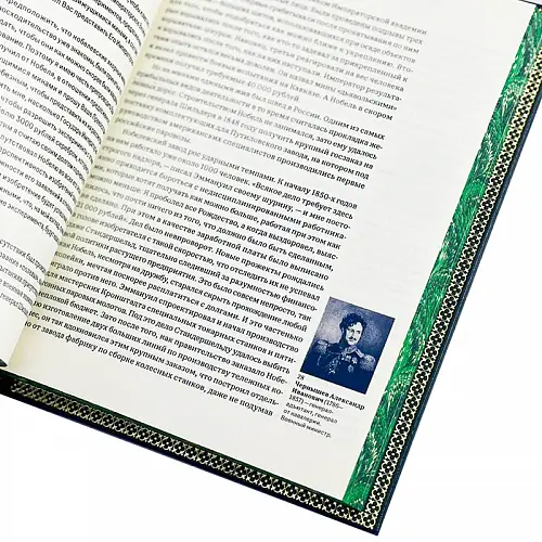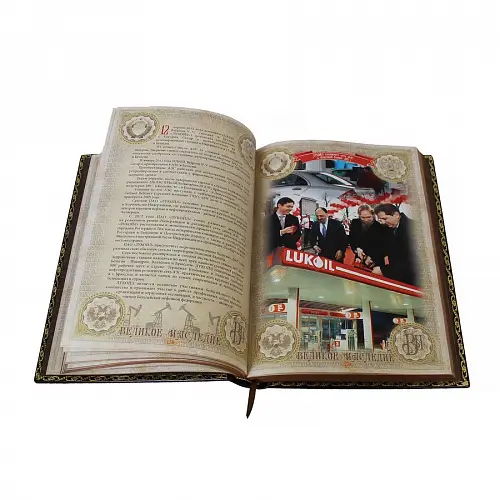 Цельнокожаный переплёт ручной работы, украшен цветной кожаной вставкой, а также золотым и блинтовым тиснением. Корешок декорирован бинтами. Текст книги напечатан на бумаге Palatina Avorio 100 Австрийского производства . Обрез оформлен в технике торшонирование. Ляссе из шёлковой ленты. Форзац цельный из дизайнерской бумаги.