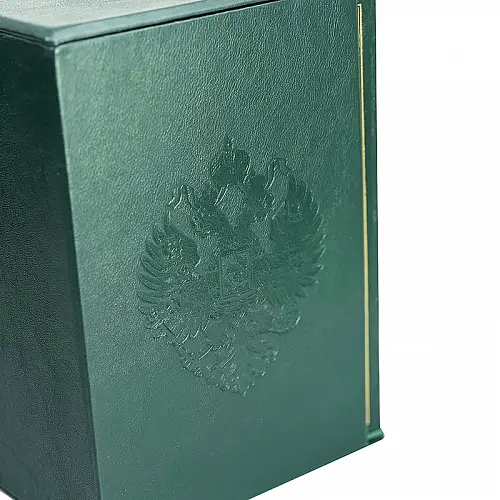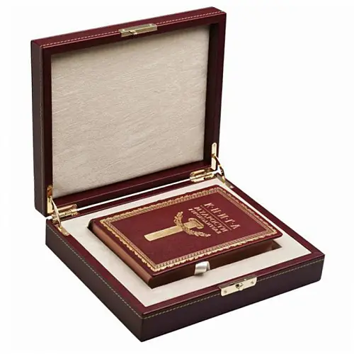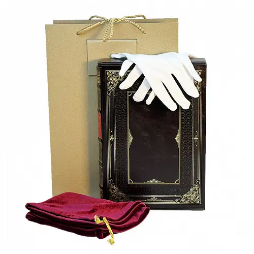 Дублюра откатана золотом. Футляр кожаный, вдохновлён дизайном книги.