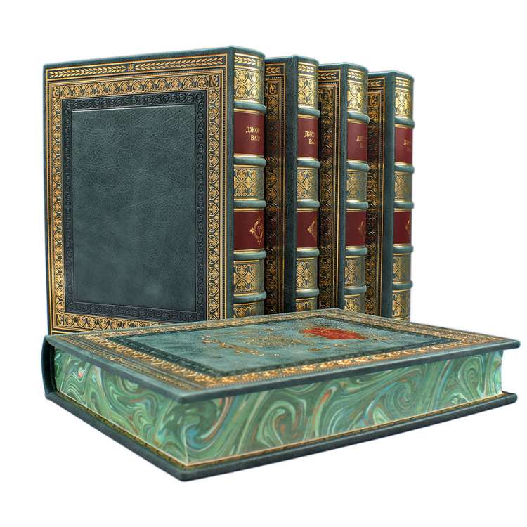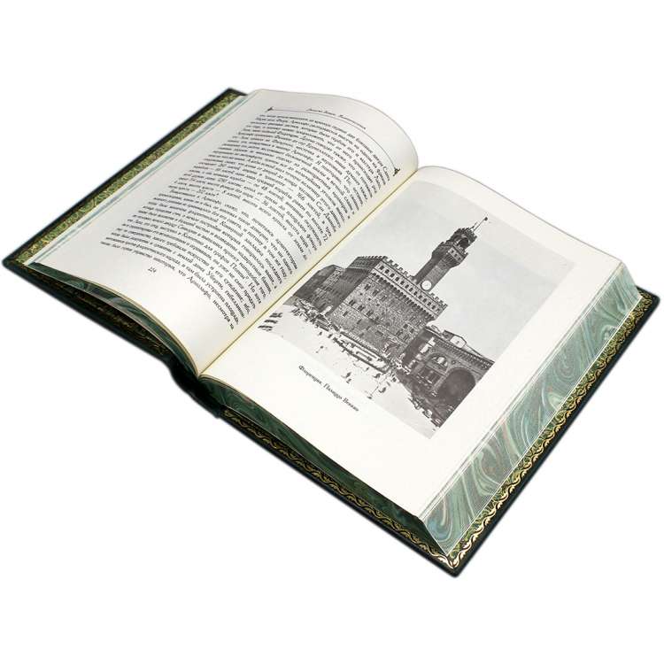 Французский стиль ручного переплета, золотое тиснение, обрез книжного блока тщательно отшлифован и окрашен. Форзац из мраморной бумаги ручной окраски.