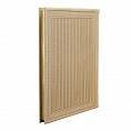 Переплёт ручной работы из натуральной кожи. Форзац из дизайнерской бумаги. 4 бинта на корешке, ручной обработки. Каптал золотой из натуральной кожи. Обрез блока торшонированный золотой. Тиснение блинтовое и золотой фольгой. Ляссе.
