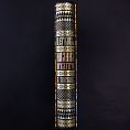 составной переплет ручной работы из натуральной кожи, составной футляр ручной работы: искусственная кожа, дизайнерская бумага, бумага SL Volume Brilliant White, переплет украшен тиснением золотой фольгой и блинтовым тиснением, шелковые каптал и ляссе, форзацы из дизайнерской бумаги.