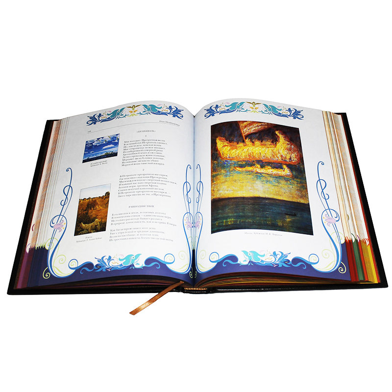 Цельнокожаный переплёт ручной работы, украшен иллюстрированной вставкой из цветного металла и золотым тиснением. Текст книги напечатан на глянцевой бумаге и дополнен цветными иллюстрациями. Обрез оформлен в технике "Перо павлина". Ляссе из шёлковой ленты. Форзац цельный из дизайнерской бумаги. Футляр кожаный, вдохновлён дизайном книги.