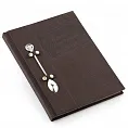 Серебро 925° — средний вес 33 г. Переплет книги изготовлен вручную из телячьей кожи натурального дубления с сохраненной естественной фактурой.
