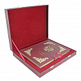 Переплёт ручной работы из натуральной кожи. Форзац из дизайнерской бумаги. 4 бинта на корешке, ручной обработки. Обрез блока торшонированное золото. Тиснение блинтовое, золотой и цветной фольгой. Каптал из натуральной кожи. Ляссе.