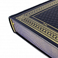 Переплёт ручной работы из натуральной кожи. Форзац из дизайнерской бумаги. 4 бинта на корешке, ручной обработки. Каптал золотой из натуральной кожи. Обрез блока торшонированный золотой. Тиснение блинтовое и золотой фольгой. Ляссе.