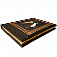 Деревянная рамка с художественной гравировкой, фотопечать на холсте. Трехсторонний золотой обрез. Кожаный переплет.
