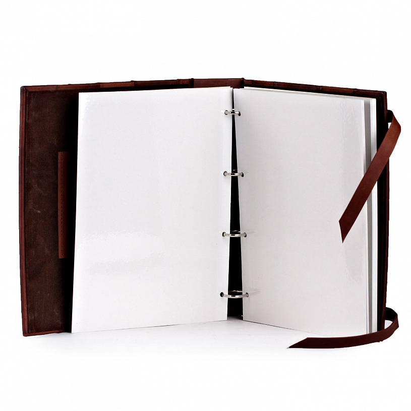 Художественное тиснение, внутренний карман для DVD дисков, максимальный размер фотографии 21 х 30 см, крепятся в произвольном порядке.