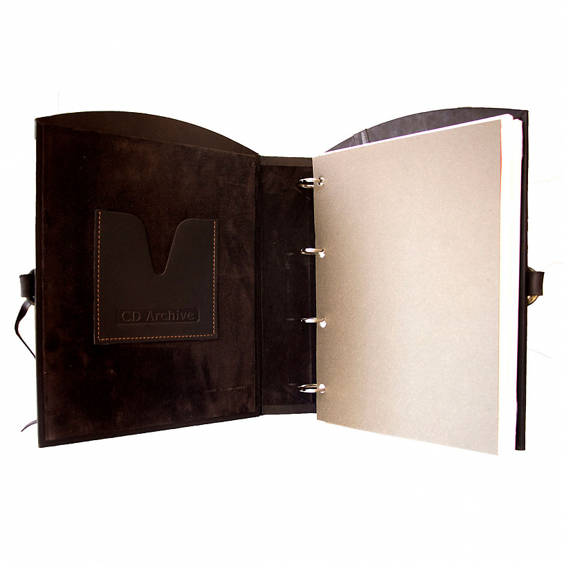 Художественное тиснение, внутренний карман для DVD дисков, максимальный размер фотографии 21 х 30 см, крепятся в произвольном порядке.