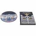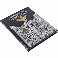 Переплёт ручной работы из натуральной кожи. Форзац из дизайнерской бумаги. 4 бинта на корешке, ручной обработки. Каптал золотой из натуральной кожи. Обрез блока торшонированный золотой. Тиснение блинтовое и золотой фольгой. Ляссе.
