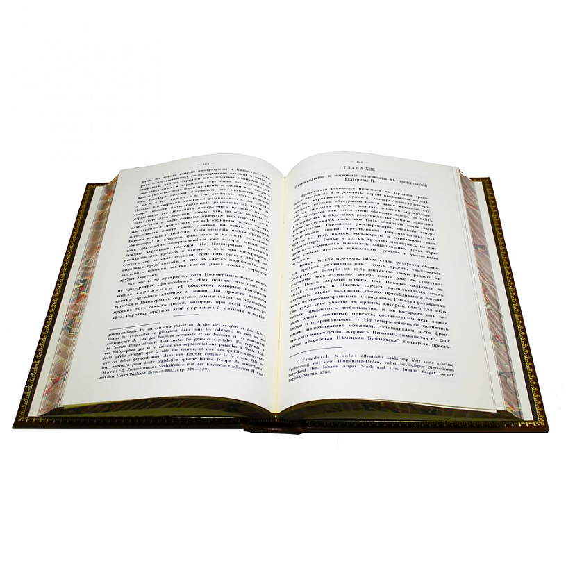 В оформлении переплета данного репринтного издания применяется уникальная технология "аппликации", выполненная из двух разных видов натуральной кожи. Золотое тиснение в сочетании с блинтом, крашеный обрез. Дублюра. Блок выполнен из высококачественной дизайнерской бумаги.