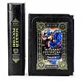 Книга представлена в оригинальном подарочном коробе, сделанном из мдф и обтянутым вручную высококачественной натуральной кожей. Цельнокожаный переплёт ручной работы, украшен иллюстрированной вставкой из цветного металла. Обложка двухуровневая. Металлические уголки дополняют дизайн и сохраняют книгу при использовании. Текст книги напечатан на мелованной бумаге и дополнен цветными иллюстрациями. Обрез оформлен художественным изображением. Ляссе из шёлковой ленты. Форзац цельный из дизайнерской бумаги.