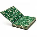 Исторический французский стиль кожаного переплета, золотое, блинтовое и цветное тиснение. Шагреневая кожа производства Франции. На обложке и корешке вставки из натуральной кожи бежевого цвета. Обрез книжного блока торшонирован, окрашен в тёмно бордовый цвет и прокатан золотом. Форзац выполнен из дизайнерской бумаги с бархатом и нанесением золотого узора. Кожаный футляр в цвет книги.