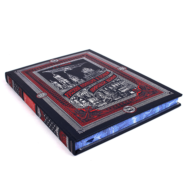 Цельнокожаный переплёт ручной работы, украшен серебряным и цветным тиснением. Текст книги напечатан на бумаге Palatina Avorio 100 Австрийского производства и дополнен чёрно-белыми иллюстрациями. Обрез оформлен в технике "Перо павлина". Ляссе из шёлковой ленты. Форзац цельный из дизайнерской бумаги. Дублюра окатана серебром.