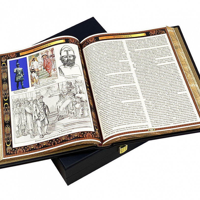 Издание представлено в оригинальной подарочной коробке. Дизайн прекрасно сочетает в себе золотое и блинтовое тиснение, художественную металлическую вставку, соответствующую тематике издания, а также крашенный в тон переплетного материала обрез. Цельнокожаный переплет ручной работы Высококачественная бумага, красочные иллюстрации, ляссе.