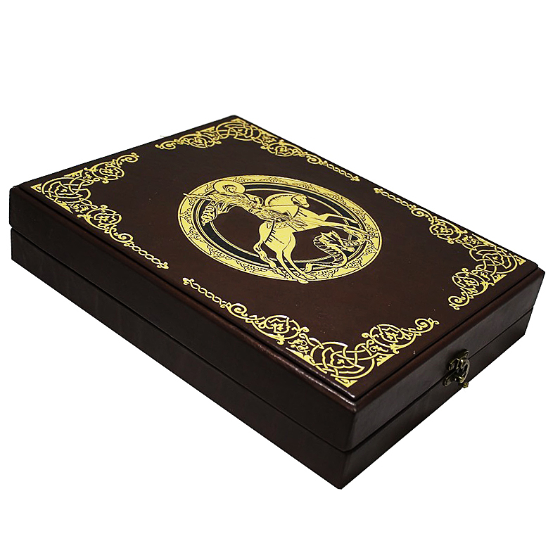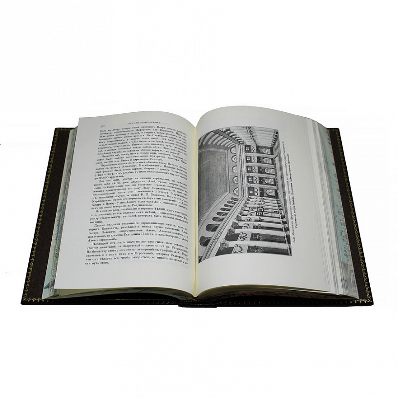 Красиво оформленное, богато иллюстрированное репринтное издание в кожаном переплете с трехсторонним окрашенным обрезом и шелковым ляссе. В оформлении применяется уникальная технология "аппликации", выполненная из двух разных видов натуральной кожи. Дизайн дополнен оригинальным сочетанием блинтового, золотого и цветного тиснения, а также шелкографии. Богато оформленные дюблюрами составные форзацы. Книга представлена в оригинальной подарочной коробке.