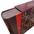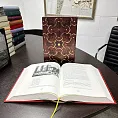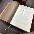 Составной переплет ручной работы из натуральной кожи, украшен тиснением золотой и медной фольгой, шелковые каптал и ляссе, форзацы из дизайнерской бумаги.