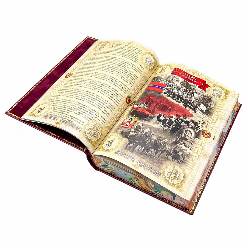 Исторический французский стиль кожаного переплета, отпечатана на дизайнерской бумаге. Уникальное цветное и рельефное тиснение, полностью ручная работа. Книжный блок отшлифован с нанесением тематических рисунков, поставляется в коробе аналогичного дизайна.
