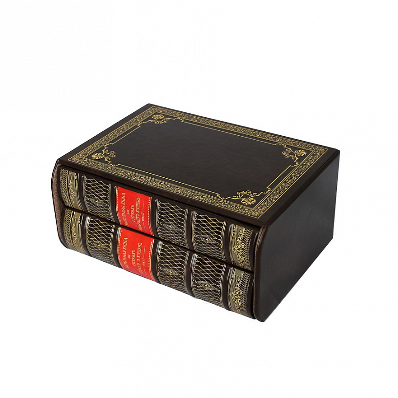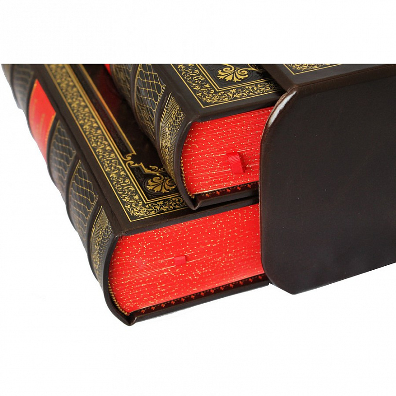 Красиво оформленное репринтное издание в кожаном переплете с трехсторонним окрашенным обрезом и шелковым ляссе. В оформлении применяется уникальная технология "аппликации", выполненная из двух разных видов натуральной кожи. Дизайн дополнен оригинальным сочетанием блинтового и золотого тиснения, а также богато оформленными дюблюрами составными форзацами. Блок отпечатан на дизайнерской бумаге "Верже". Подарочный футляр.