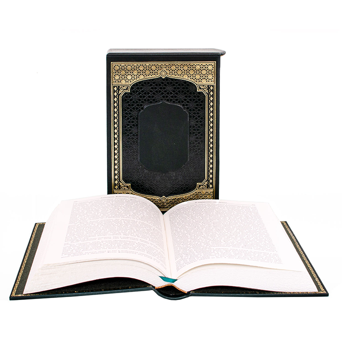 В оформлении переплета этого репринтного издания применяется сочетание блинтового и золотого тиснения, выполненных на высококачественной натуральной коже, а также вставка из кожи другого цвета и фактуры. Книжный блок отпечатан на дизайнерской бумаге высокого качества. Богато оформленные дублюрами составные форзацы. Торшированый с золотым тиснением обрез, ляссе. Издание представлено в подарочном футляре. Количество страниц: 724 с.