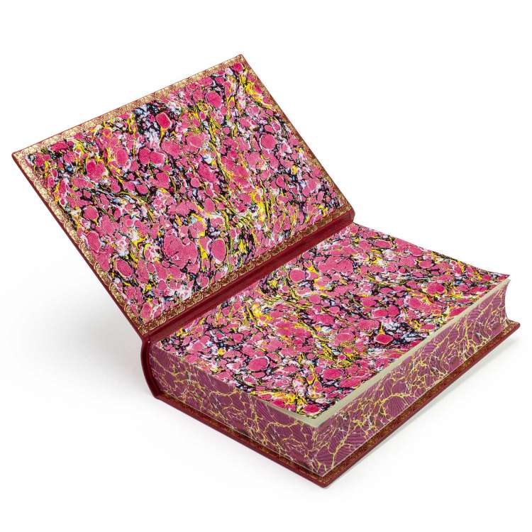 Кожаный переплет книг с использованием высококачественной переплетной кожи. Ручное тиснение золотом, цветное и блинтовое. Книжные блоки отшлифованы и тонированы, что не только украшает книги, но и делает их более долговечными. Использованы только натуральные, высокого качества материалы, книги отпечатаны на специализированной бумаге «Ozon Ivory» (Германия).