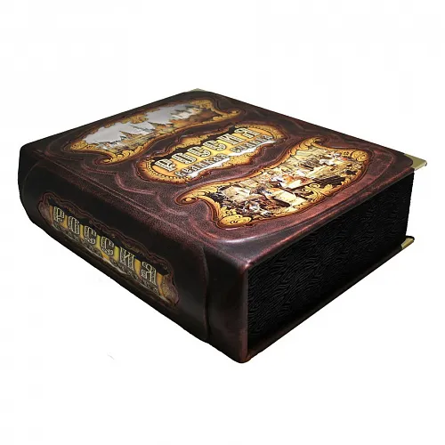 Книга представлена в оригинальном подарочном коробе, сделанном из мдф и обтянутым вручную высококачественной натуральной кожей. Цельнокожаный переплёт ручной работы, украшен иллюстрированной вставкой из цветного металла. Обложка двухуровневая. Металлические уголки дополняют дизайн и сохраняют книгу при использовании. Текст книги напечатан на мелованной бумаге и дополнен цветными иллюстрациями. Обрез оформлен художественным изображением. Ляссе из шёлковой ленты. Форзац цельный из дизайнерской бумаги.