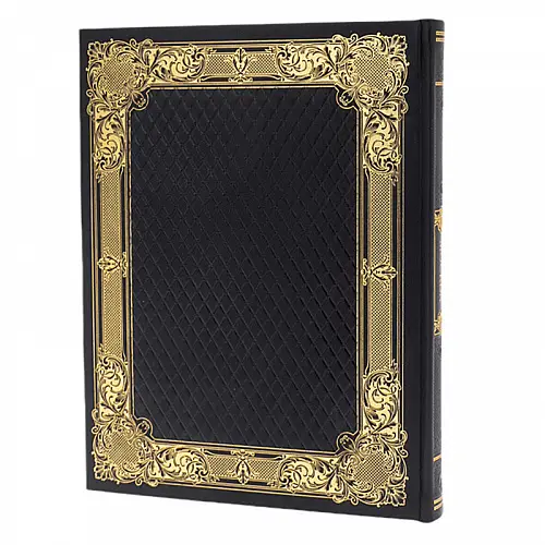 Цельнокожаный переплёт ручной работы, украшен иллюстрированной вставкой из цветного металла. Обложка двухуровневая. Металлические уголки дополняют дизайн и сохраняют книгу при использовании. Текст книги напечатан на мелованной бумаге и дополнен цветными иллюстрациями. Обрез оформлен художественным изображением. Ляссе из шёлковой ленты. Форзац цельный из дизайнерской бумаги.