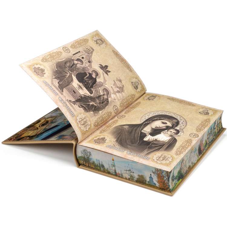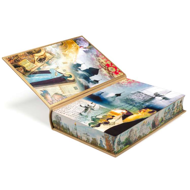Книга представлена в оригинальном подарочном коробе, сделанном из мдф и обтянутым вручную высококачественной натуральной кожей. Книжный блок отпечатан на немецкой, дизайнерской бумаге высокого качества. Кожаный переплет ручной работы. Натуральная кожа. Цветное и блинтовое рельефное тиснение по коже. На корешке книги укреплены и украшены бинтами (гребешковые выступы). Ручная шлифовка и покраска обрезов книги с трех сторон. Дублюра откатана, так же мастером, вручную. Форзац - дизайнерская бумага.