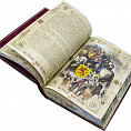 Французский стиль кожаного переплета, уникальное тиснение по коже, полностью ручная работа. Отпечатана на дизайнерской бумаге с многочисленными иллюстрациями, блок страниц отшлифован, тонирован с нанесением тематических рисунков. Подарочный короб в аналогичном оформлении.