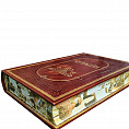 Переплет ручной работы выполнен по технологиям XIX века из высококачественной переплетной кожи КРС натурального дубления. По всему периметру книги выполнено блинтовое тиснение, конгревное объемное 3D тиснение, а также тиснение «золотой» фольгой.
