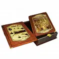 Репринтное издание представлено в оригинальном подарочном коробе, сделанном из металла, и обтянутым вручную высококачественной кожей. Металлические художественные вставки с изображением, соответствующим тематике издания. Отпечатано на дизайнерской бумаге ""верже"". Крашеный в тон переплетного материала обрез.