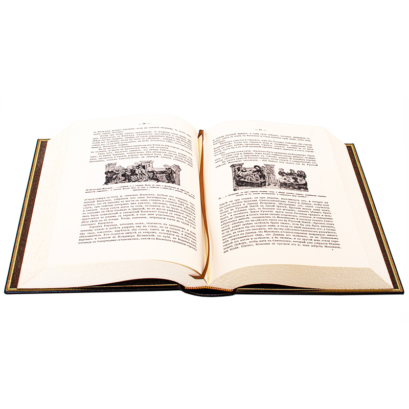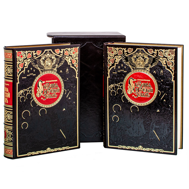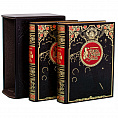 В дизайне этого репринтного двухтомника прекрасно сочетаются различные виды тиснения (золотой, цветной фольги и блинта), что придает определенный эстетический вид. Цельнокожаный переплет, выполненный в классическом стиле. Книжный блок отпечатан на дорогой дизайнерской бумаге "верже". Оформлено в футляре.