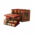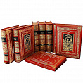 Красиво оформленное, богато иллюстрированное букинистическое издание в переплете из натуральной кожи, с шелковым ляссе и тонированным с золотым тиснением обрезом. Дизайн включает в себя сочетание цветного и золотого тиснения, составные форзацы, оформленные дублюрами, а также вставки из кожи другого цвета и фактуры. Шеститомник представлен в оригинальной, удобной для переноски подарочной коробке.