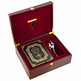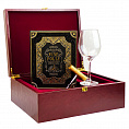 Подарочный набор включает в себя путеводитель по вину в кожаном переплете «Wine Folly: Издание Магнум» – расширенная версия книги «Wine Folly: Вино. Практический путеводитель». В оформлении переплета применяется сочетание блинтового и золотого тиснения, выполненных на высококачественной натуральной коже. Дизайн дополнен крашенным в тематику обрезом. Ляссе. Дублюры. Также в набор входит винный бокал и штопор, оформленных в деревянной коробке, обтянутой кожей.