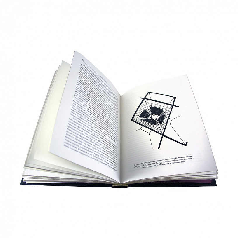 Переплёт ручной работы из натуральной кожи. Форзац из дизайнерской бумаги. 6 бинтов на корешке, ручной обработки. Каптал золотой из натуральной кожи. Обрез блока торшонированный золотой. Тиснение блинтовое и золотой фольгой. Ляссе.