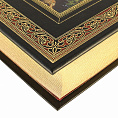 Переплёт ручной работы из натуральной кожи. Форзац из дизайнерской бумаги. 6 бинтов на корешке, ручной обработки. Каптал золотой из натуральной кожи. Обрез блока торшонированный золотой. Тиснение блинтовое и золотой фольгой. Ляссе.