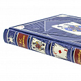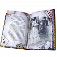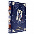 Художественный кожаный переплет, индивидуальный дизайн оформления. Тиснение рельефное и цветное на обложке, корешке и дублюре. Отпечатана на дизайнерской бумаге с тематическим оформлением. На обрезы блока страниц, также нанесены стилизованные изображения игральных карт.