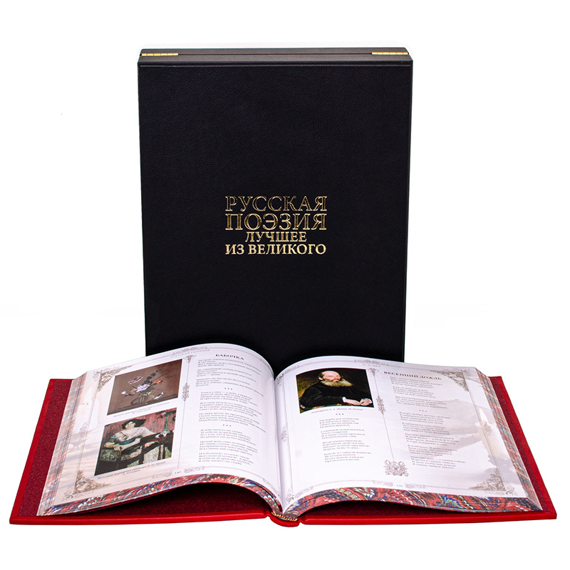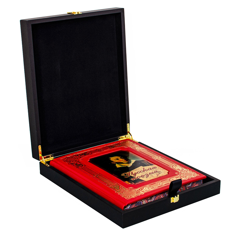 Дизайн прекрасно сочетает в себе золотое и бинтовое тиснение, художественную металлическую вставку, соответствующую тематике издания, а также крашенный в тон переплетного материала обрез. Цельнокожаный переплет ручной работы Высококачественная бумага, красочные иллюстрации, ляссе.