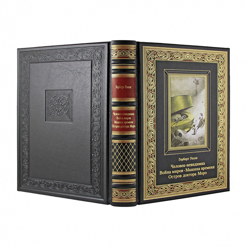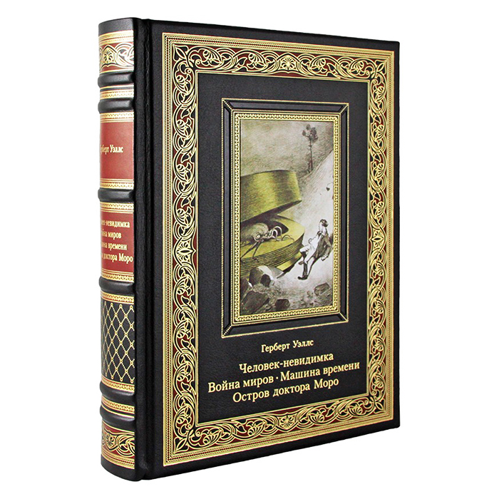 Книга в коже "Человек-невидимка. Война миров. Машина времени. Остров доктора Моро" Герберт Уэллс