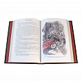 Классический европейский переплёт ручной работы из натуральной кожи. Форзац из дизайнерской бумаги Malmero с тиснением орнамента золотой фольгой. 6 бинтов на корешке, ручной обработки. Каптал золотой из натуральной кожи. Обрез блока – золото с торшонированием. Тиснение блинтовое, золотой и цветной фольгой. Ляссе.