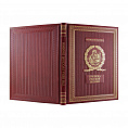 Переплёт ручной работы из натуральной кожи. Форзац из дизайнерской бумаги. 4 бинта на корешке, ручной обработки. Каптал золотой из натуральной кожи. Обрез блока торшонированный золотой. Тиснение блинтовое и золотой фольгой. Ляссе.