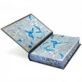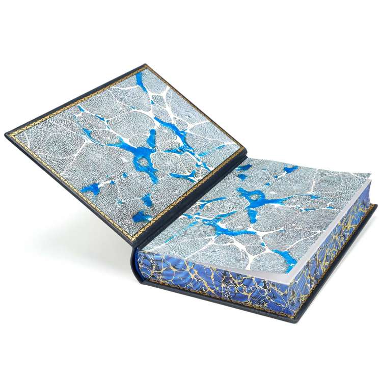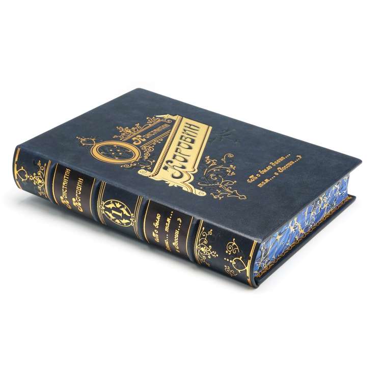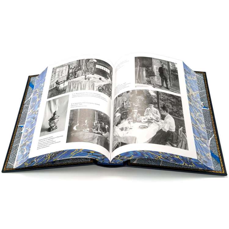 Исторический кожаный перелет, тиснение цветное, блинтовое и рельефное. Книги отпечатаны на дизайнерской бумаге Ozon Ivory, книжные блоки сшиты вручную и отшлифованы. Обрезы книжного блока с трех сторон тонированы и украшены золотым узором, каптал ручного плетения.