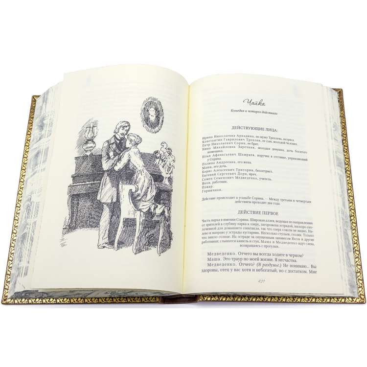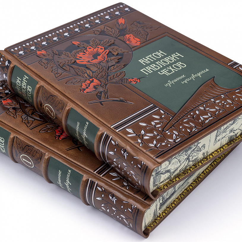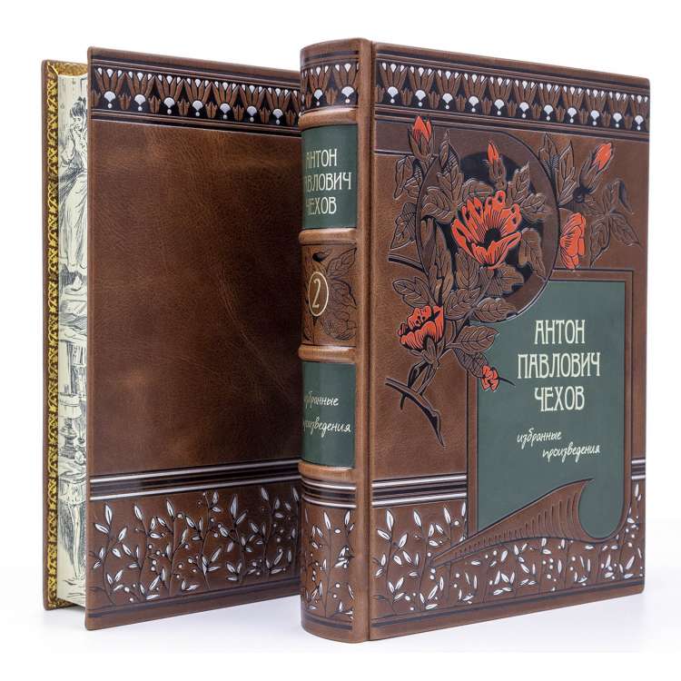 Подарочные книги в кожаном переплёте. Антон Павлович Чехов избранное. Повести и рассказы, пьесы Чайка, Три сестры, Вишневый сад в подарочном издании, художественный кожаный переплет.
