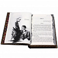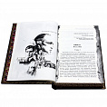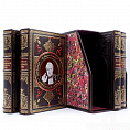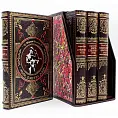 Серия книг в французском стиле кожаного переплета, тиснение по коже блинтовое, рельефное и цветное. Книжные блоки тонированы с нанесением орнамента на обрезы с трех сторон. Специально для этих разработан дизайн страниц. Книга отпечатана на немецкой бумаге.