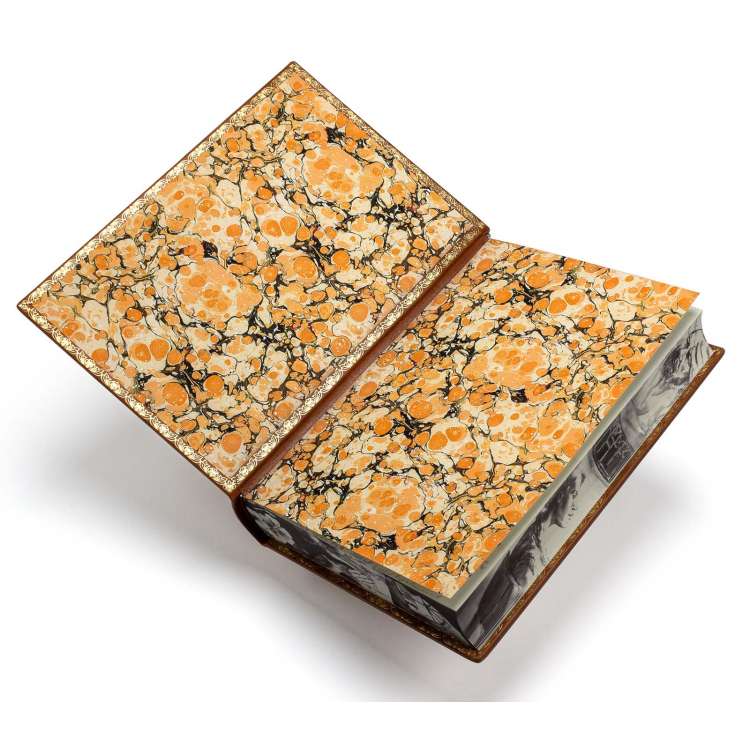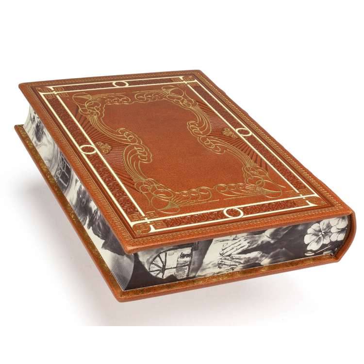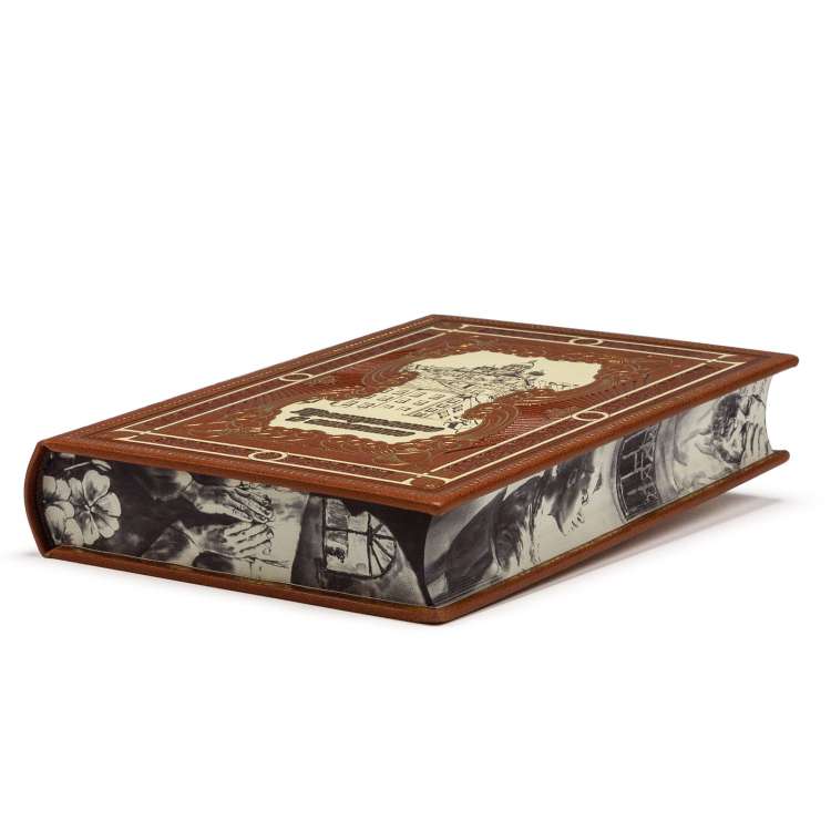 Исторический стиль французкого кожаного переплета, тиснение цветное, блинтовое и рельефное. Книги отпечатаны на дизайнерской бумаге Ozon Ivory, книжные блоки сшиты вручную и отшлифованы, обрезы книжного блока с трех сторон украшены тематическим рисунком, каптал ручного плетения. Данное подарочное издание имеет иллюстрации.
